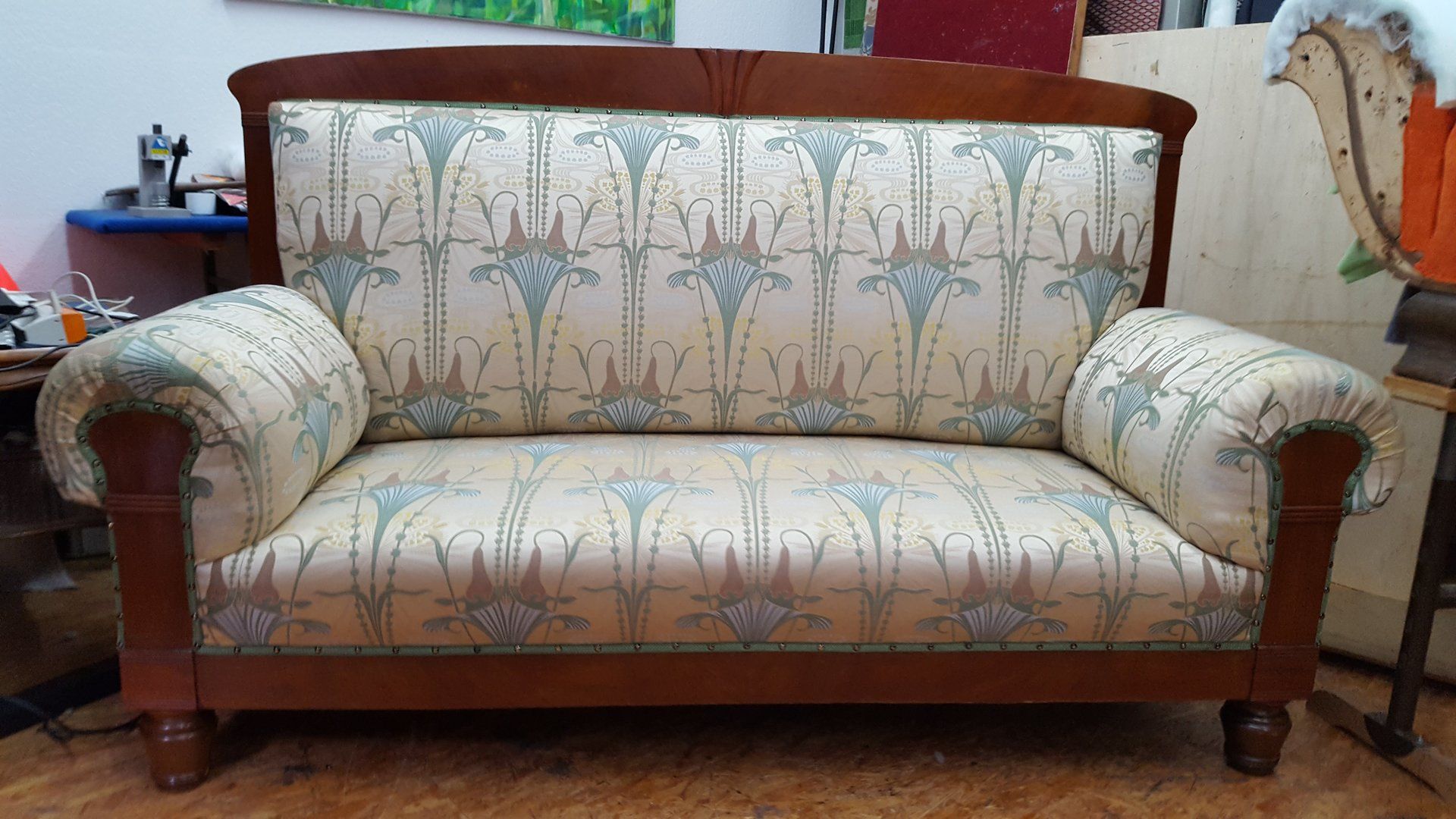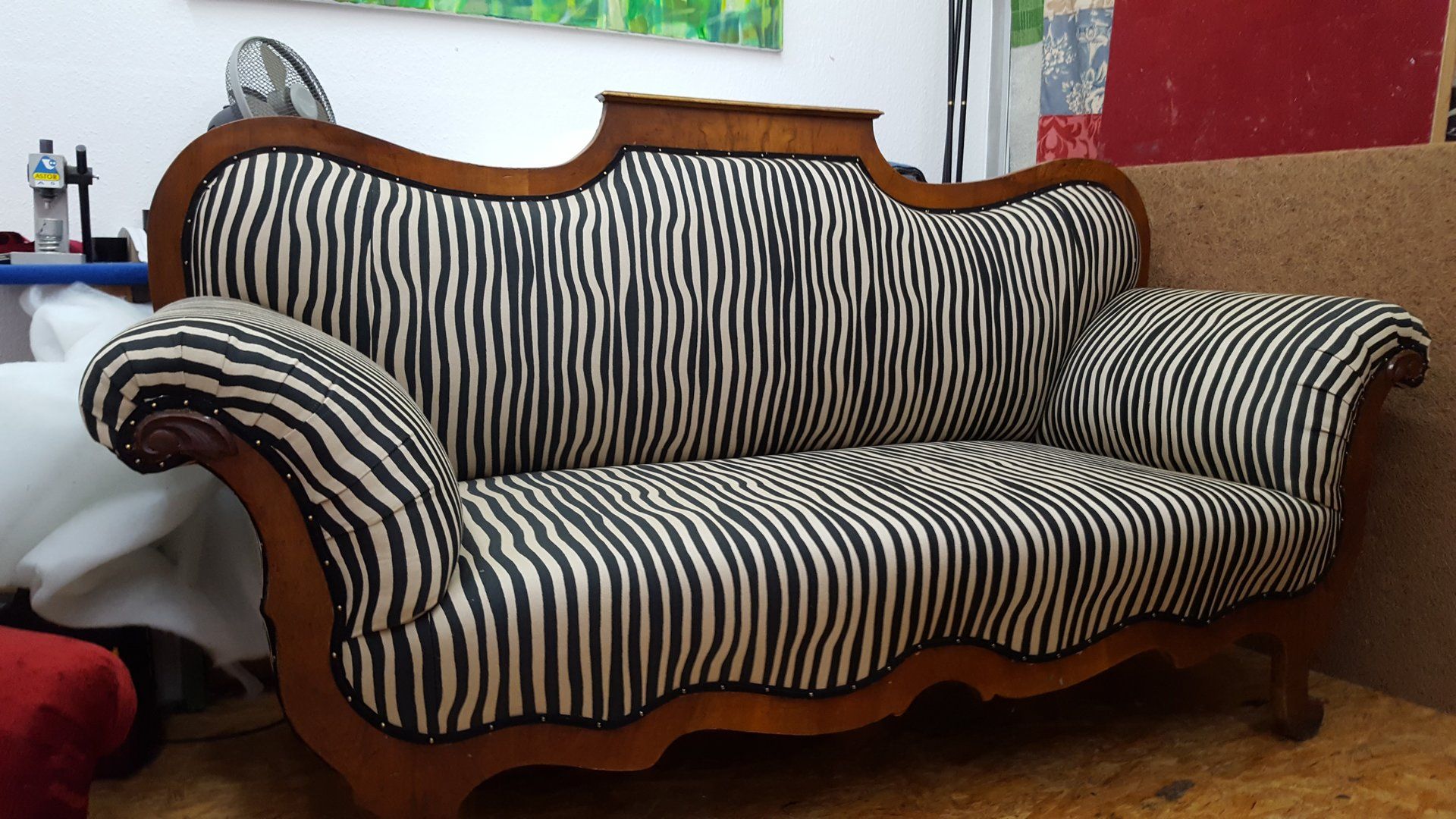 Für das Stück „Kleine Eheverbrechen“ Sofa gepolstert und bezogen